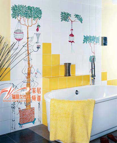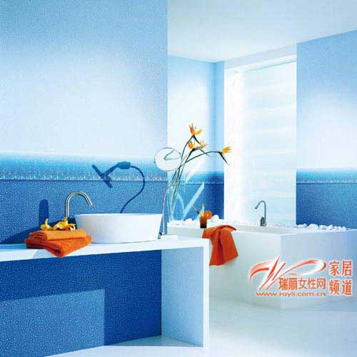 墻面上的絢麗打造,最容易為衛(wèi)浴生活營造氣氛,也是炫彩衛(wèi)浴攻略中的重點(diǎn)。在封閉式設(shè)計(jì)的衛(wèi)浴間里,炫彩墻面以各個(gè)功能區(qū)的裝飾性主題墻的方式出現(xiàn)較好,可以是兩三種色彩的瓷磚組拼,也可以在局部區(qū)域貼彩色壁紙,馬賽克裝飾也是不錯(cuò)的點(diǎn)綴手段。