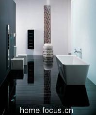 中國(guó)印象采用整體方正的直線(xiàn)條設(shè)計(jì)風(fēng)格,端正穩(wěn)健,格調(diào)高雅,充分體現(xiàn)出中統(tǒng)美學(xué)精神。中規(guī)中矩的三面產(chǎn)品布局設(shè)計(jì),將實(shí)用主義與融合性設(shè)計(jì)相結(jié)合,中式經(jīng)典得以現(xiàn)代版演繹。浴鏡與面盆設(shè)置方式為中國(guó)式的完全對(duì)稱(chēng),黑色U型浴室柜方正簡(jiǎn)潔、渾然大氣,與整個(gè)空間的瓷磚完美地結(jié)合,體現(xiàn)出濃厚的古典氣息。兩側(cè)的裝飾柱擎天而立,橫跨整個(gè)空間,明朗寬闊、大氣奢華。所有的潔具、面盆、浴缸均采用圓弧造型,和空間的方形瓷磚形成鮮明對(duì)比,簡(jiǎn)約的造型給人最本質(zhì)的感官享受。