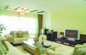 ■客廳 本案的設(shè)計(jì)使整個(gè)空間更加連貫、開(kāi)闊?蛷d的天花板采用散點(diǎn)光源設(shè)計(jì),使燈光明亮而柔和。深色的胡桃木沙發(fā)背墻,配上現(xiàn)代感十足的電視音響,名貴而不張揚(yáng),極好地襯托出了整體風(fēng)格的沉靜與素雅。門(mén)廳作為客廳與餐廳的過(guò)渡空間,承接了客廳的厚重與餐廳的精致,精巧的配飾與裝飾畫(huà),在燈光的映射下十分生動(dòng)。