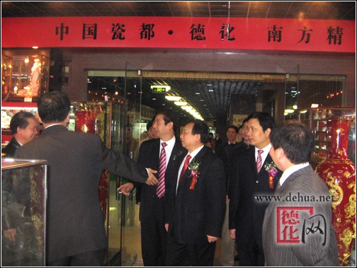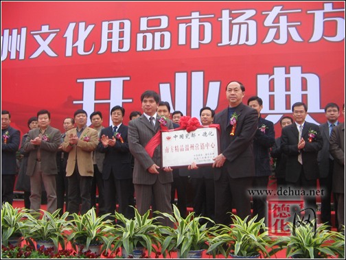 【德化網(wǎng) 訊】 12月28日,正當(dāng)溫州文化用品市場——東方工藝美術(shù)城開業(yè)典禮之際,中國瓷都 德化—南方精品浙江溫州營銷中心也于當(dāng)日在溫州東方工藝美術(shù)城正式授牌,開業(yè)迎賓。這是我縣精品陶瓷在溫州市的一次全面展示,也是德化與溫州兩地攜手合作、攜手發(fā)展的一個良好的窗口。