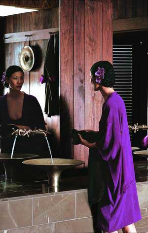 浴室內(nèi)可以利用一些具有特色的裝飾品、植物來裝扮空間,調(diào)劑心情之余,也營造出一種美妙、清新的氛圍;