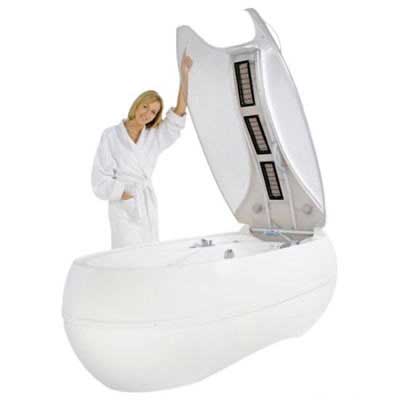 看這個小小的浴缸,它可是一個的可進行泡泡浴、蒸汽浴和紅外線桑拿浴的三合一浴缸,保證比你見過的任何一個浴缸都好用。