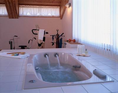 這個設(shè)計的很不錯,健身房和浴缸的完美結(jié)合,想想,剛剛鍛煉完,馬上就可以來個SPA是不是很爽?