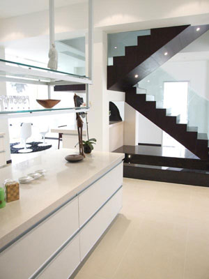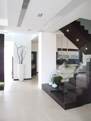 樓梯是一層空間的亮點,錯落折疊的黑色“風(fēng)琴”給白色簡約的空間增添酷感,時尚崇拜呼之欲出。樓梯采用當(dāng)今米蘭最流行的設(shè)計元素??黑鋼板為主材,并實施鈦馬赫工藝,樓梯不但防震,防潮,外觀也更顯品位。玻璃扶手在滿足視覺效果的同時,提高了安全保障。