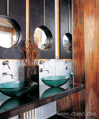 值得借鑒的地方:浴缸的一面墻改為裝飾墻,里面安放了一些插花,使衛(wèi)生間里保持自然的氣息,可以從衛(wèi)生間外面隨時更換插花,很有創(chuàng)意也非常方便。