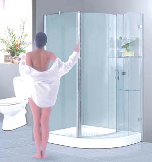 淋浴房的基本構造是底盤加圍欄。底盤質(zhì)地有陶瓷、壓克力、玻璃鋼等,圍欄框架多為鋁合金質(zhì)地,外層噴塑。圍欄上安有塑料或鋼化玻璃門,可以方便進出,玻璃上印有各色噴花或線條。淋浴房底盤的尺寸大致有80×80 厘米和90×90 厘米兩種,面積大小可以根據(jù)自己的需要確定。
