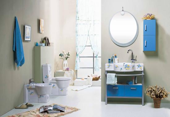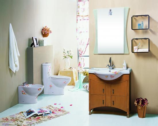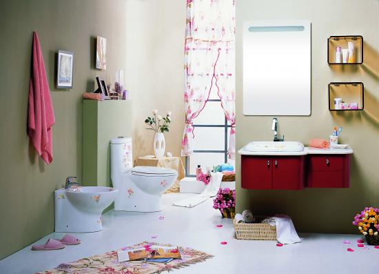 玫瑰花點(diǎn)綴潔具,整體以玫瑰色系為主,極有浪漫情調(diào)。