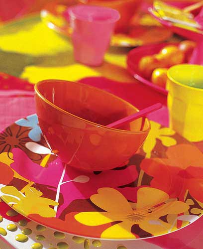 色餐具很容易買到,不過在挑選的時候,不妨仔細(xì)找一找那些造型特別的產(chǎn)品。例如圖片上碗口傾斜的小碗和兩層的粉色食物架,為節(jié)日里放松的生活多增添一分樂趣。
