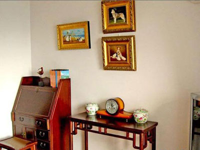 一個(gè)古色古香的柜子,幾幅簡(jiǎn)單的畫(huà),將中式和田園巧妙地融合在一起。