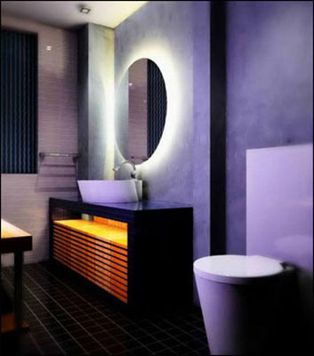 冷調(diào)的粉紫是調(diào)情的高手,手工刺繡的雛菊?qǐng)D案在紫紗上若隱若現(xiàn),給沉悶的衛(wèi)浴帶來遐想,沉醉在這明艷的色調(diào)中,享受全身心的放松吧!來點(diǎn)綠植,大片的綠葉豐富了黑色瓷磚的層次,給浴室?guī)砹藷o限的生機(jī)。