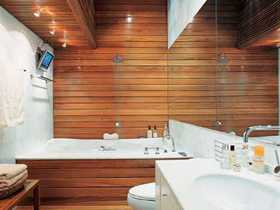 木質(zhì)十足的桑拿間感覺,在享受輕松洗浴的時候還能看喜歡的電視節(jié)目。
