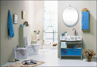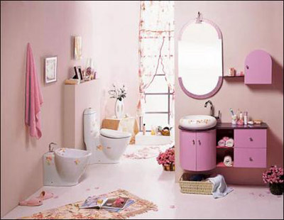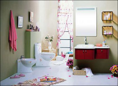 玫瑰花點綴潔具,整體以玫瑰色系為主,極有浪漫情調(diào)。