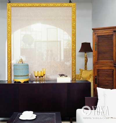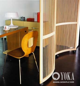 設(shè)計時尚的屏風(fēng),有時甚至比擺放在它前面的家具更加吸引目光。這類屏風(fēng)無論是材料還是設(shè)計都非常大膽、新穎。選料上,往往擯棄了那些厚重的材料,由透明、輕柔的材料所取代。所以包括卡紙、塑料、絹紗等等一些材料都用在屏風(fēng)的制作上面,加上特別的設(shè)計,有相當(dāng)出彩的效果。若選擇時讓你無從入手,建議從圖飾和色彩上入手,采用幾何、花卉、純色這些元素的屏風(fēng)無論什么時候都不易過時。