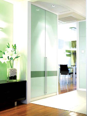 對(duì)于最普遍的90平米以下的小戶型來說,由于條件限制,進(jìn)門處的玄關(guān)空間都挺狹窄。既然沒有那么多的空間可以揮霍,玄關(guān)設(shè)計(jì)還是應(yīng)以滿足儲(chǔ)物收納等實(shí)用功能為主。主要是為了方便脫衣服換鞋帽,可以把鞋柜、衣帽架、大衣鏡等設(shè)置在玄關(guān)內(nèi)。07年還是以低柜隔斷式為主,但細(xì)節(jié)處又有了新意。
