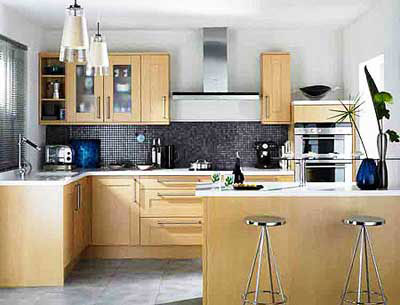 廚房的墻面必須以實(shí)用為主,但新型材料的出現(xiàn)為其裝飾功能奠定了基礎(chǔ)。在能解決油煙的前提下,你可以嘗試使用涂料和墻紙,它們色彩艷麗,花紋豐富,一改廚房墻壁單調(diào)的局面。這時(shí)選擇的涂料墻紙要有很好的耐擦洗性和多層覆蓋性。在水池和灶臺附近,可以用玻璃、金屬等合成材料制作的隔油層釘在墻上。