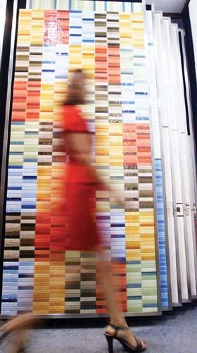 那些開著小花兒的、彩虹般絢麗的、有著皮質(zhì)手感的瓷磚們恣意地釋放著魅力,抓住你的眼球。站在它們面前,忍不住幻想,客廳、廚房、衛(wèi)生間“穿”上它們會是怎樣的表情呢?請你來和我們一起暢想。