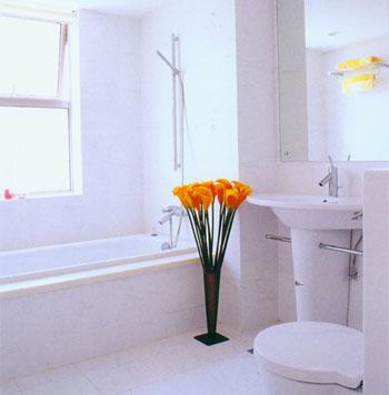 同樣為合理利用空間起見(jiàn),浴室配置的選用,很考驗(yàn)主人的智慧。鏡柜和底柜充實(shí)豐滿(mǎn)的浴室家具,可以將衛(wèi)生間中常用的洗面乳、牙刷杯、剃須刀等瑣碎之物都隱藏在鏡子的后面,同時(shí)也可以將其他使用周期稍長(zhǎng)的洗滌清潔用品整齊地收藏在面盆下面的小柜中;占地小的分體座廁,既省地又省錢(qián);長(zhǎng)度在1.5米以下的浴缸,深度往往比一般的浴缸深,由于缸底的面積小,往往是更節(jié)約空間的選擇。此外如掛墻式淋浴龍頭、靠角臺(tái)面、單孔臉盆龍頭等,節(jié)省空間且現(xiàn)代味十足。