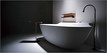 獨立浴缸的歷史和人類有洗浴習慣的時間一樣長。像是全人類的集體無意識創(chuàng)造,從古羅馬到中國盛極的唐朝,這種獨立式洗浴一直是從貴族到百姓所鐘愛的方式。可以想象,當我們赤裸裸地躺在里面的時候,溫暖的水輕輕地撫摩我們的身體,在水的載歌載舞中外界完全與自己的身體區(qū)分開,半失重的狀態(tài)讓神經(jīng)得以放松,意識漸漸飄忽,這會兒仿佛又重新回到了母體。獨立浴缸,正是對母體環(huán)境最真切的模仿。