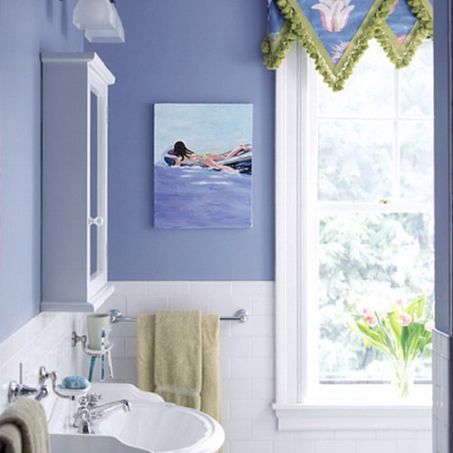 這浴室已有兩個(gè)儲物墻柜,配上簡潔的柱式洗手盆極為適合。墻柜上部裝玻璃門,增加了通透感,側(cè)面向洗手盆斜開,既避免了方正呆板圖行天下的形狀,又能在洗手盆前順暢地使用抽屜。