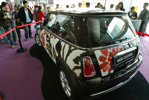 圖為11月28號在廣州舉行焦點房地產(chǎn)網(wǎng)搜狐網(wǎng)www.focus.cngoodfeel圖行天下校友錄搜狗17173www.focus.cn的2006廣州國際設(shè)計周展覽中的一部用瓷磚裝飾的迷你Cooper車。樣子是挺好看,不過就是不知道性能怎么樣。