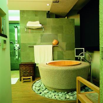 主臥洗手間。讓多少人羨慕的圓形浴缸,內(nèi)層為木質(zhì),外層為水刷石,有著良好的人體工程尺度。防滑地板使洗浴更加輕松和安全。 浴室最能體現(xiàn)私密空間的干凈利落,大方雍容。圓形浴缸內(nèi)層為木質(zhì),外層為水刷石,有著良好的人體工程尺度,周圍設(shè)一道防水線,對人體貼入微,防滑地板,使洗浴更加輕松和安全。在衛(wèi)生間里,設(shè)計(jì)師從意大利帶回的男士專用潔具上面,有一塊精美的潮州木雕,它畫龍點(diǎn)睛地揭示了主人的生活品質(zhì)。