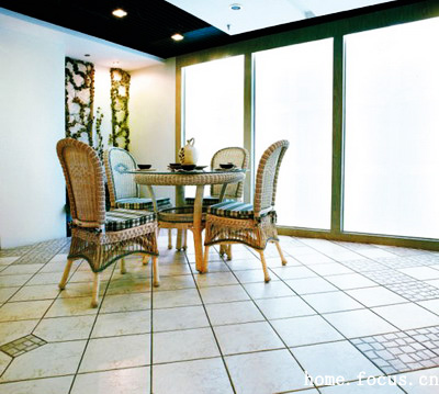 大片落地窗吸納充沛的自然光源,陽光之感油然而生。餐廳依陽臺而設,充分利用自然光,飲食起居與自然接近,已日漸成為家居裝飾新時尚。精心營造的統(tǒng)一素色,再配以同樣富有大自然情趣的藤制餐桌和手工陶制餐具,你便可品味來自大自然的味道。