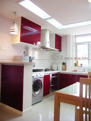 這樣的布置適合炒菜時(shí)間之外的日常家居。廚房成為廳的延伸,不僅空間延伸過去,活動內(nèi)容也跟了過去。早晨,妻子在廚房弄點(diǎn)早餐,丈夫在沙發(fā)上看著報(bào)紙,兩人順便溝通一下今天的活動內(nèi)容。沒有阻礙,更為融洽。晚間,一邊看電視,一邊照顧著灶火上的營養(yǎng)粥。人總是易犯懶,尤其在一天的工作勞碌之后,渴望的是不再奔波,休息的同時(shí)做了家務(wù),豈不是更好。