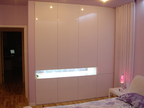 自己設計的衣柜,中間的鏤空處貼的紋樣壁紙和電視墻呼應