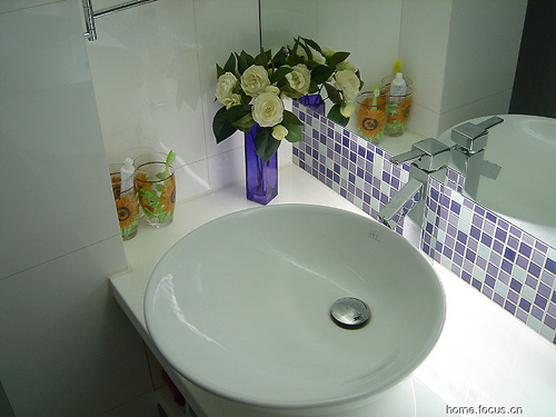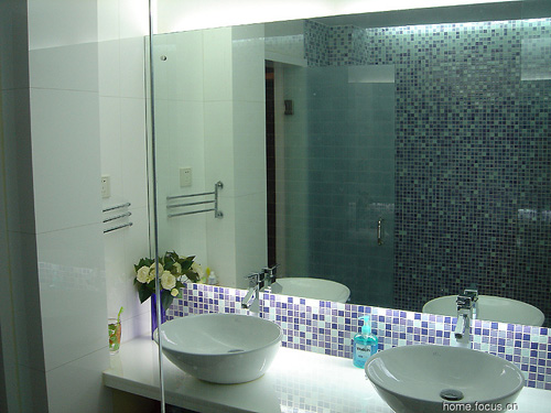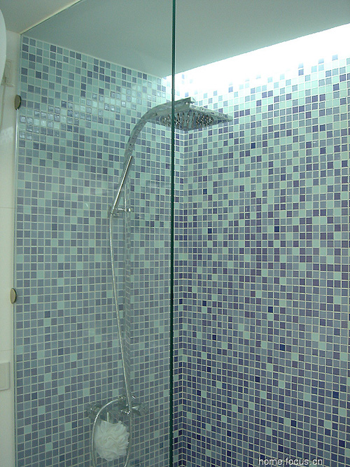 玻璃馬賽克制作的淋浴區(qū)晶瑩透亮