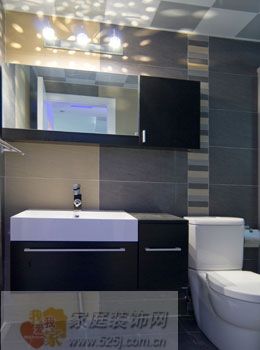 浴室采用冷色調(diào)為主,墻頂?shù)匿X扣板與廚房采用一樣的材質與色系這使空間風格更顯得統(tǒng)一性。墻壁采用的青石磚類似的來裝飾,米色與灰色搭配在一起,現(xiàn)代氣息十足(這個磚據(jù)說材質很硬的,施工起來很不方便,但施工后效果也是可見的)。黑色的柜子與客廳里的家具色是一樣的,黑色的儲蓄柜顯得很大氣,稍加觀察就可發(fā)現(xiàn)柜子的另一個秘密哦,拉開鏡子里面是個很大的儲存空間,以后可以把瓶瓶罐罐都收納在里面很實用,這也是設計師的用心之處。值得一提的是浴室里的三盞節(jié)能燈很亮很玄,結合現(xiàn)代風為一體的完美效果。