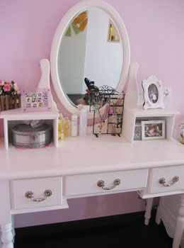 八十年后的女孩的臥室里一定少不了梳妝臺,這款梳妝臺非常淑女再適合不過了。梳妝臺一定要有儲存空間,八十后的女孩總是會有很多小秘密的。在梳妝臺上還可以擺放些自己喜歡的飾品,一個首飾架就把平時零零碎碎的耳環(huán)項鏈都收拾干凈了,而且需要時一目了然,這個是非常實用的韓式收納法哦。