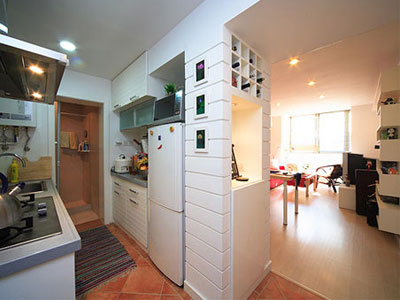 一進(jìn)門就可以看見一個很有特色的玄關(guān)。玄關(guān)分為三個部分,上面做成格子架既可以做裝飾又可以放酒,也看到過很多業(yè)主家做的是歐式型斜格子的酒架,但從視覺上來說還是感覺這個最舒服。中間做成裝飾性質(zhì)的,一幅畫、一個射燈把空間的美感表現(xiàn)的淋漓盡致。下面做成儲蓄空間。一個玄關(guān)多種用途很受用。