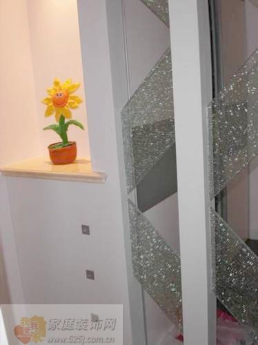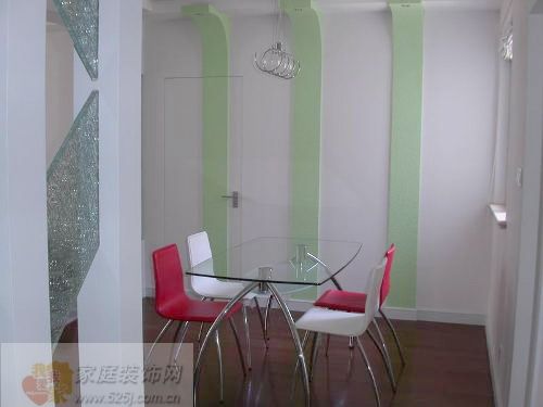 入門口處儲藏室墻壁的加長,直接制造出了一塊玄關的資源,既可以當作鞋箱使用,又可以營造出別樣的空間,裂紋玻璃的使用,正好和客廳內(nèi)的玻璃柱子形成呼應。在餐廳的墻面設計上面,同樣也是方柱形狀的墻面造型,這樣,玄關支撐玻璃的方柱、餐廳的墻面凸柱,還有客廳的玻璃方柱,都成為一個在不同空間內(nèi)有機聯(lián)系的主體。
