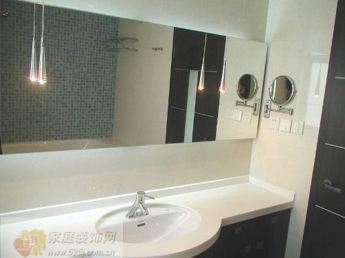 衛(wèi)浴間在一般人的眼里始終都是冰冷的感覺,特別如果為了整體風(fēng)格也是冷靜、簡潔線條的設(shè)計(jì)的話,衛(wèi)浴區(qū)域的冷淡更為明顯。但是棱角分明也不失一種先鋒派風(fēng)格,在干區(qū),寬屏的大鏡子讓空間更加寬敞,濕區(qū)浴缸前面做了樓梯踏步,有線條的布置使小空間有了層次感,也更顯人性化。