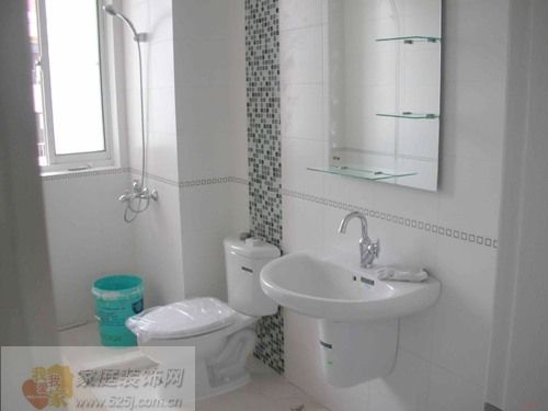 客衛(wèi)專(zhuān)門(mén)定做的漸變色馬賽克,專(zhuān)門(mén)放在馬桶后面,可之較高一面的墻上有個(gè)亮點(diǎn)。顏色選了和白色和灰色有關(guān)系的四個(gè)同色系的馬賽克打亂了來(lái)擺放。而一條寬白和一條窄灰的組合,可以和腰線相呼應(yīng)的。