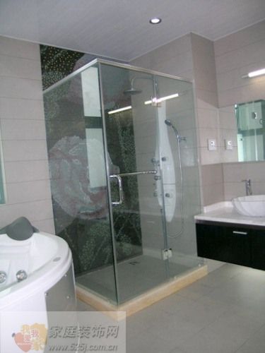 主衛(wèi)淋浴房內的淋浴屏如裝在正面,將遮蓋馬塞克拼花圖案,破壞整幅圖案的整體效果,和老解聯(lián)系后決定將淋浴屏移到側面墻上。