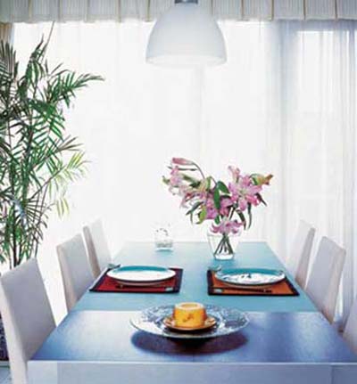 強調(diào)色彩柔和、協(xié)調(diào),配飾大方穩(wěn)重,以木質(zhì)材料為主。設(shè)計上注重實用和舒適,摒棄過于夸大的雕琢性飾品。"雅致"兩字則主要在軟裝飾上體現(xiàn),如主人經(jīng)常彈奏的古箏、一盞宮燈、一幅國畫,放在適當(dāng)?shù)奈蛔佣寄芷鸬近c睛效果。