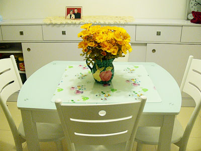 餐前柜也是鞋柜一個廠家訂做的,唯一不滿意的東西。果然我不在家那天挑顏色方面就會出錯,偶當(dāng)時為了配合這個純白風(fēng)格,千叮萬囑要乳白色的,結(jié)果還是做了個啞光白的,而且拉環(huán)也超不搭配的。爸爸只考慮到實(shí)用,偶呢要求美觀。湊合著用吧,有時間買桶白漆買些田園把手來改造一下~~~