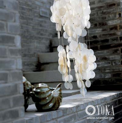一串從東南亞捎來(lái)的貝殼風(fēng)鈴掛在庭院中,隨著清脆的響聲,自然的風(fēng)韻更是味到十足。