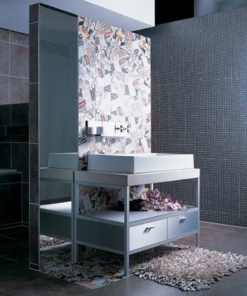 對于一些人來說,如果僅僅是一面墻,一定覺得無聊至極。即便是藍(lán)色或者黃色,時(shí)間久了依然會(huì)感覺厭倦。連落地鏡和拉絲鋁浴室家具都閃著光芒躍躍欲試,那么,為什么不用最大膽的POP花色瓷磚拼貼整面墻壁沖擊視覺神經(jīng)呢?
