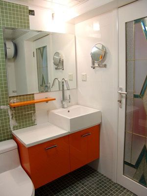 為了貯存一些衛(wèi)生用品,衛(wèi)生間常常設(shè)置柜櫥,或者在墻面上做壁柜。如果在柜櫥或凹槽的門面上安裝上鏡面,不僅使衛(wèi)生間空間更寬敞、明亮,而且豪華美觀,費(fèi)用也不貴,更可以與梳妝臺(tái)結(jié)合起來,作為梳妝臺(tái)鏡使用。