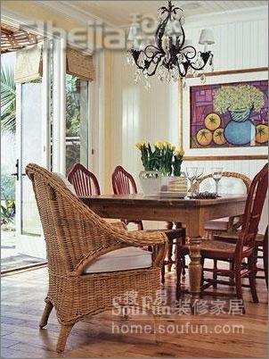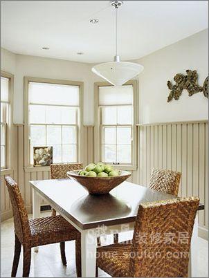 一張看似呆板的白底木面餐桌也能給餐廳帶來意想不到的活潑效果,簡單的長方桌搭配上藤條編制的座椅,使餐廳充滿了原始自然的味道。