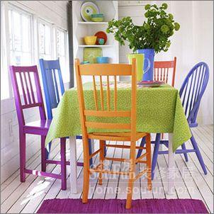 普普通通的折疊椅隱藏在顏色鮮艷,款式新穎的椅套里,與桌上鋪的色彩夸張的桌布相映成趣,平凡立刻得到升華,感覺像置身在一場熱鬧的大Party中。