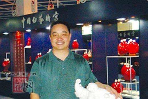 在一次拜見啟功教授時(shí),啟功先生鼓勵(lì)他要繼承德化中國白的傳統(tǒng)技藝,要在傳承與創(chuàng)新上下功夫。啟功先生談了兩個(gè)觀點(diǎn):一是中國白追求的最高境界應(yīng)像玉的境界,沒有上釉更能體現(xiàn)玉的質(zhì)感;中國紅應(yīng)追求的是紅而雅,美而艷,亮而柔的藝術(shù)境界;二是德化瓷雕不要局限于佛像彌勒、觀音之類的傳統(tǒng)題材,搞藝術(shù)的一定要貼近生活、反映時(shí)代,才更有感染力。