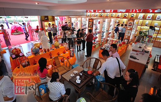 據(jù)了解,營(yíng)銷中心包括了當(dāng)代德化瓷藝術(shù)的品種和流派,熔現(xiàn)代藝術(shù)和現(xiàn)代科技于一體,既有工藝瓷、高檔藝術(shù)瓷雕,又有日用瓷,可謂異彩紛呈,百花爭(zhēng)妍藝術(shù),匯集了瓷都德化20多位工藝美術(shù)大師和企業(yè)的工藝、日用兩大類陶瓷系列數(shù)千件作品、產(chǎn)品。