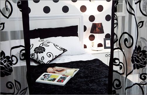 黑白床幔和床品,配上圓點(diǎn)墻面,一切都顯得那么和諧。