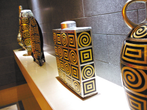 這一系列的花瓶,線條分明,飄逸流暢。沉穩(wěn)的古銅色讓人仿佛置身于春秋戰(zhàn)國時代,這類以陶瓷做成的花瓶,用來點綴居室最能營造出古雅的文化氛圍,不失為彰顯品位的一種選擇。