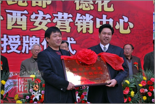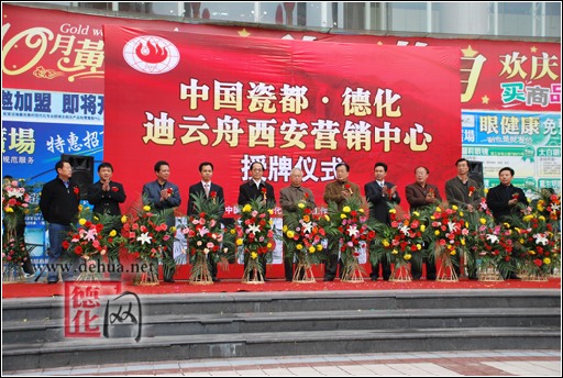 德化瓷向以白瓷著名,被譽(yù)為“東方藝術(shù)”、因而“天下共寶之”。 德化瓷塑以中國(guó)白為材質(zhì),瓷塑造型、技藝、材質(zhì)、釉色、燒制技藝自成特色。為進(jìn)一步解讀、詮釋當(dāng)代德化瓷藝術(shù)經(jīng)典,促進(jìn)德化瓷藝術(shù)的傳承、創(chuàng)新和發(fā)展。經(jīng)精心籌備,中國(guó)瓷都·德化——迪云州陶瓷西安營(yíng)銷中心,于11月15日在西安正式授牌,開業(yè)迎賓。這是瓷都德化精品陶瓷的集中全面展示,也是德化與西安兩地?cái)y手合作、共促發(fā)展的一個(gè)良好的窗口。