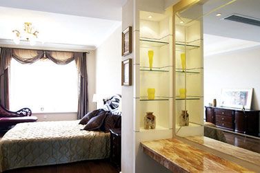屋主說,客廳是他最喜歡的地方,由設計師親自挑選的細致水晶燈飾、雙色沙發(fā)的搭配,甚至于飾品的擺 設,再加上搶眼的紅色柜面與門片,在年輕風格之余,又增加了一抹屬于女人味的小華麗風情。
