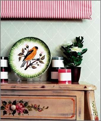 布置窗的時(shí)候,不僅要注意色彩和諧,也要講究風(fēng)格的統(tǒng)一。梳妝臺(tái)上的手繪玫瑰圖案跟粉色條紋棉布窗簾在色彩上形成和諧呼應(yīng),手繪瓷盤典雅而不失活潑,為點(diǎn)睛之筆,烘托出一派英式鄉(xiāng)村風(fēng)格,與室內(nèi)整體格調(diào)完美統(tǒng)一。餐廳的窗下,最適合布置成這樣隨意溫馨的小景
